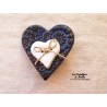 Broche coeur, en faïence émaillées, couleur bleu nuit et petit coeur blanc