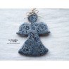Personnage Ange, céramique à suspendre en faïence émaillé, couleur bleu gris métal