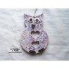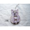 Hibou fleurs petit modèle en céramique, faïence émaillée couleur camaïeu de parme,
